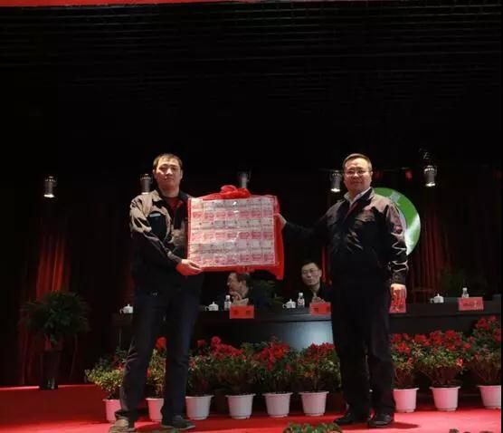 現(xiàn)場發(fā)放獎金,表彰創(chuàng)造這一指標(biāo)有功的干部和職工。