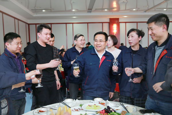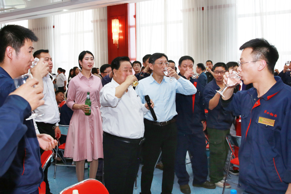 孫壽寬董事長與現(xiàn)場全體員工共同舉杯祝愿嘉晨明天更美好
