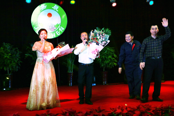 演出在女聲獨(dú)唱《紅紅的日子》中拉開帷幕,紅紅的日子,美滿的寫照,真實(shí)的反映出嘉晨人對集團(tuán)公司現(xiàn)狀和對集團(tuán)未來的美好向往。女聲獨(dú)唱《幸福山歌》描繪了嘉晨員工幸福、美滿的生活畫卷;歌曲《紅梅贊》歌曲樸實(shí)優(yōu)美,深情而又樂觀,告訴嘉晨人不能忘記老一輩革命先烈們,為了中華民族的崛起犧牲自我的革命主義精神和對憧憬中國美好未來的堅(jiān)定信念;男聲獨(dú)唱《牡丹之歌》歌曲充滿濃郁的民族風(fēng)格和新鮮的時(shí)代氣息;男聲獨(dú)唱《草原升起不落的太陽》描繪出嘉晨人熱愛家鄉(xiāng)、贊美生活、歌頌黨和領(lǐng)袖的心聲;大合唱《嘉晨之歌》展現(xiàn)了嘉晨人以強(qiáng)烈的主人翁精神,用熱情、素質(zhì)、實(shí)際行動支持企業(yè)的決心和奉獻(xiàn)自我的楷模精神;鐵嶺民間藝術(shù)團(tuán)的二人傳表演:詼諧幽默,富有生活氣息,讓在場所有人無不開懷大笑。京胡獨(dú)奏《梨花頌》,電子琴獨(dú)奏《茉莉花》,歌曲《為了誰》、《在此刻》、《我們不一樣》、《老家拉拉屯》、《把酒倒?jié)M》、《我們不一樣》、《好男兒》,等節(jié)目輪番上演,晚會最后在集團(tuán)孫總一首《呼倫貝爾大草原》的優(yōu)美旋律中落下帷幕。整臺晚會精彩紛呈,內(nèi)容豐富,掌聲不斷,為嘉晨集團(tuán)干部職工送上了一道豐富多彩的文化大餐。圖為晚會現(xiàn)場。