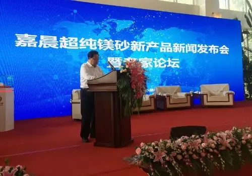5月17日下午,由嘉晨集團、營口市人民政府新聞辦公室、營口市工業(yè)和信息化局聯(lián)合舉辦的嘉晨集團超純鎂砂新產(chǎn)品新聞發(fā)布會暨專家論壇,在嘉晨集團總部大樓舉行。嘉晨集團董事長孫壽寬、總裁孫朝英、總工程師畢德利,省發(fā)改委、省工信廳、省科技廳相關(guān)領(lǐng)導,營口市副市長翁永財,及市有關(guān)部門主要領(lǐng)導;大石橋市政府、老邊區(qū)政府主要領(lǐng)導及相關(guān)部門;鎂制品行業(yè)協(xié)會領(lǐng)導、國內(nèi)外耐火材料行業(yè)專家,以及70多家耐火材料行業(yè)企業(yè)家共計140余人出席。20多家媒體記者參加了發(fā)布會。
