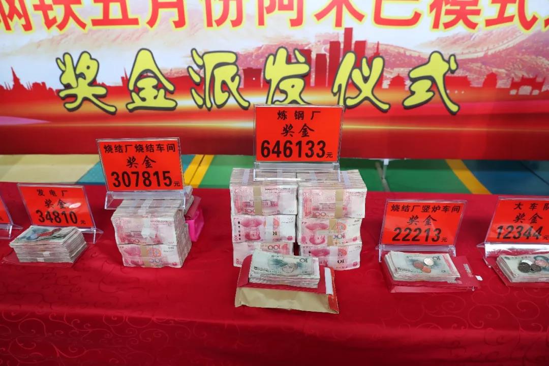 按照阿米巴經(jīng)營(yíng)目標(biāo)考核,煉鋼廠本月派發(fā)獎(jiǎng)金646133元、燒結(jié)廠燒結(jié)車間派發(fā)獎(jiǎng)金307815元、豎爐車間派發(fā)獎(jiǎng)金22213元、軋鋼廠派發(fā)獎(jiǎng)金21132元、發(fā)電廠派發(fā)獎(jiǎng)金34810元、動(dòng)力部派發(fā)獎(jiǎng)金12133元、運(yùn)輸公司派發(fā)獎(jiǎng)金12344元。獲獎(jiǎng)單位領(lǐng)導(dǎo)逐次上臺(tái)領(lǐng)獎(jiǎng),一個(gè)字“爽”?。?br />