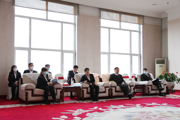 下午2:20時(shí),集團(tuán)董事長孫壽寬首先向省中行賈天兵行長、楊玉峰副行長等一行就到嘉晨集團(tuán)實(shí)地考察、現(xiàn)場辦公表示熱烈歡迎。董事長向客人詳細(xì)介紹了集團(tuán)各個(gè)公司的經(jīng)營情況,特別是在疫情期間一手抓疫情防控、一手抓生產(chǎn),實(shí)現(xiàn)防控生產(chǎn)兩不誤。全集團(tuán)庫存產(chǎn)成品“超純鎂”6萬噸、盤螺等28萬噸、焦炭7萬噸,原材料儲備十分充足,生產(chǎn)流動(dòng)性良好。賈天兵行長對我集團(tuán)這些年的發(fā)展變化和對社會的卓越貢獻(xiàn),對公司的資源優(yōu)勢和高科技項(xiàng)目前景表示看好,對公司復(fù)工復(fù)產(chǎn)的經(jīng)營情況表示肯定,對公司的未來發(fā)展充滿信心。董事長對省中行予以我集團(tuán)的支持和肯定表示感謝,希望雙方加強(qiáng)溝通聯(lián)系,構(gòu)建有效的合作平臺,建立長效機(jī)制,積極推進(jìn)銀企合作項(xiàng)目的落實(shí)。