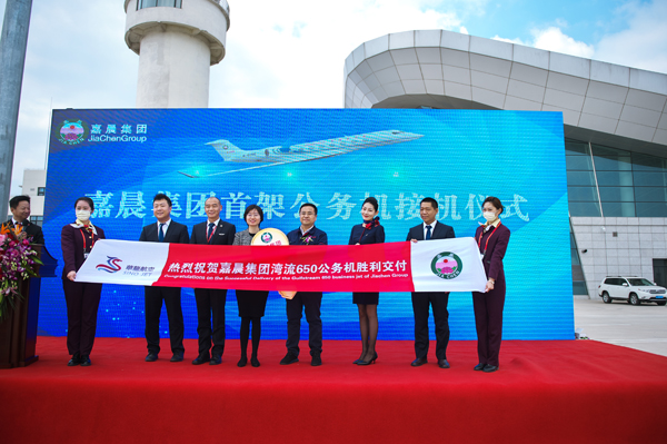 4月9日11時(shí)18分,嘉晨集團(tuán)首架G650公務(wù)機(jī)平穩(wěn)的降落在營(yíng)口蘭旗機(jī)場(chǎng),經(jīng)歷了一年多的等待期盼,嘉晨人終于迎來(lái)了首架公務(wù)機(jī)的勝利交機(jī)。這意味著,嘉晨集團(tuán)開(kāi)創(chuàng)了營(yíng)口民營(yíng)企業(yè)購(gòu)買公務(wù)機(jī)的先河,也是遼寧省首家選擇G650公務(wù)機(jī)的企業(yè)。這不僅是我們嘉晨集團(tuán)的驕傲,同時(shí)也是全市人民的榮耀。
